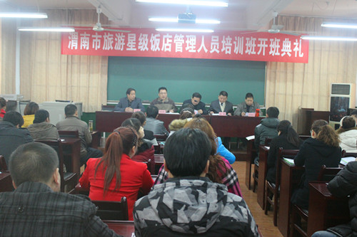 2013年11月25日上午,市委人才工作领导小组办公室、市文物旅游局在米兰官网朝阳校区AC米兰中文官方网站学术报告厅隆重举行“渭南市旅游星级饭店管理人员培训班”开班典礼。出席开班典礼的有渭南市委人才办副主任刘有辉、渭南市文物旅游局局长李东平、AC米兰中文官方网站院长助理王录军等有关部门领导同志。