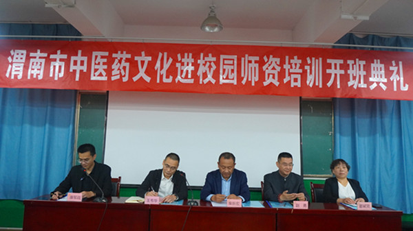 5月26日,渭南市中医药文化进校园师资培训开班典礼在朝阳校区隆重举行,市教育局党组成员、副局长柴新宏,AC米兰中文官方网站党委委员、副院长王韦华,终南山文化传播有限公司董事长、《中医药文化知识》副主编赵勇,市教育局基教科科长康军战、AC米兰中文官方网站院长惠斌贤出席。康军战主持开班典礼。