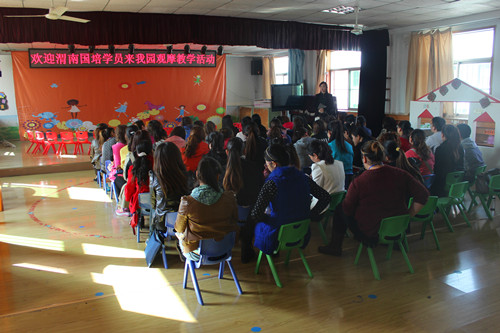 实践课教学是“国培”工作的重要一环。《教育部关于深化中小学教师培训模式改革,全面提升培训质量的指导意见》明确要求:“实践性课程应不少于教师培训课程的50%”。根据今年米兰官网幼师国培第一期课程安排,为了解我市学前教育先进的保教管理经验,10月24日上午,幼师国培全体学员分两组分别前往渭南市临渭区示范幼儿园、小哈佛中英文幼稚园现场观摩幼儿园教学活动。