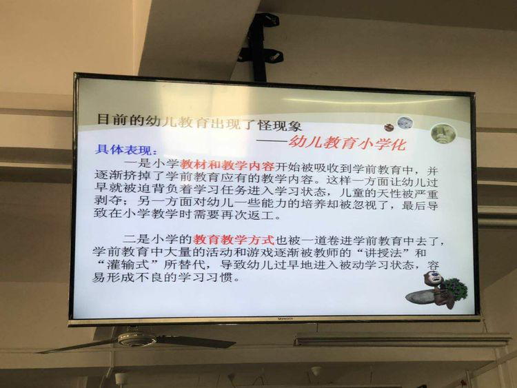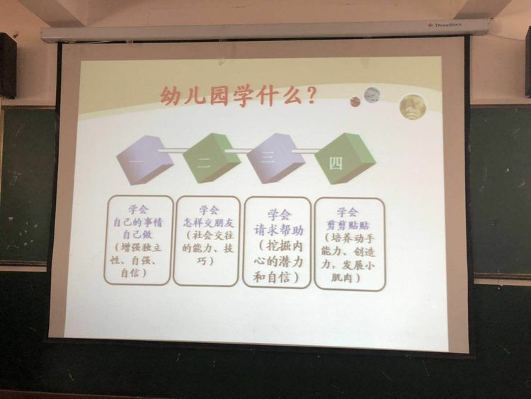 4月16日上午我们有幸聆听了杨楠楠教授《幼儿园教育与小学教育的区别及幼小衔接》的精彩讲座,老师带领大家学习了“省,市”出台的相关文件。从不同方面讲解了《幼儿园学什么》,《家长应关注什么》以及《纠正幼儿园“小学化”的教育方式》。这一讲座为我所有在场的园长指明了幼儿园的办园目标和方向,幼儿园有责任和义务用自己的知识和智慧,引领家长树立正确教育方式,家园携手并进,使幼儿正规,健康、全面发展。