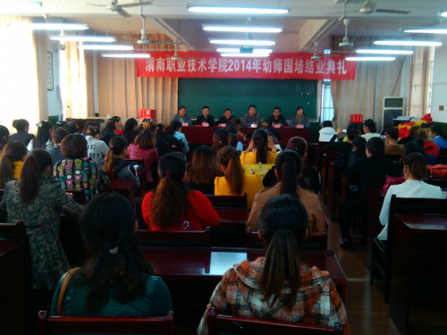 2014年11月2日下午,米兰官网承办的2014年幼师国培短期集中培训项目——陕西省公(民)办幼儿园园长高级研修班(第三期)结业典礼暨汇报演出在AC米兰中文官方网站多媒体教室举行。AC米兰中文官方网站院长赵新平作培训工作总结,党总支书记雷建文同志宣布《AC米兰中文官方网站办公室关于表彰幼师国培优秀学员的决定》,AC米兰中文官方网站办公室主任张选民同志主持开班典礼。来自渭南市11个县(市、区)的100余名幼儿园园长圆满完成为10天的国培学习任务,顺利结业。